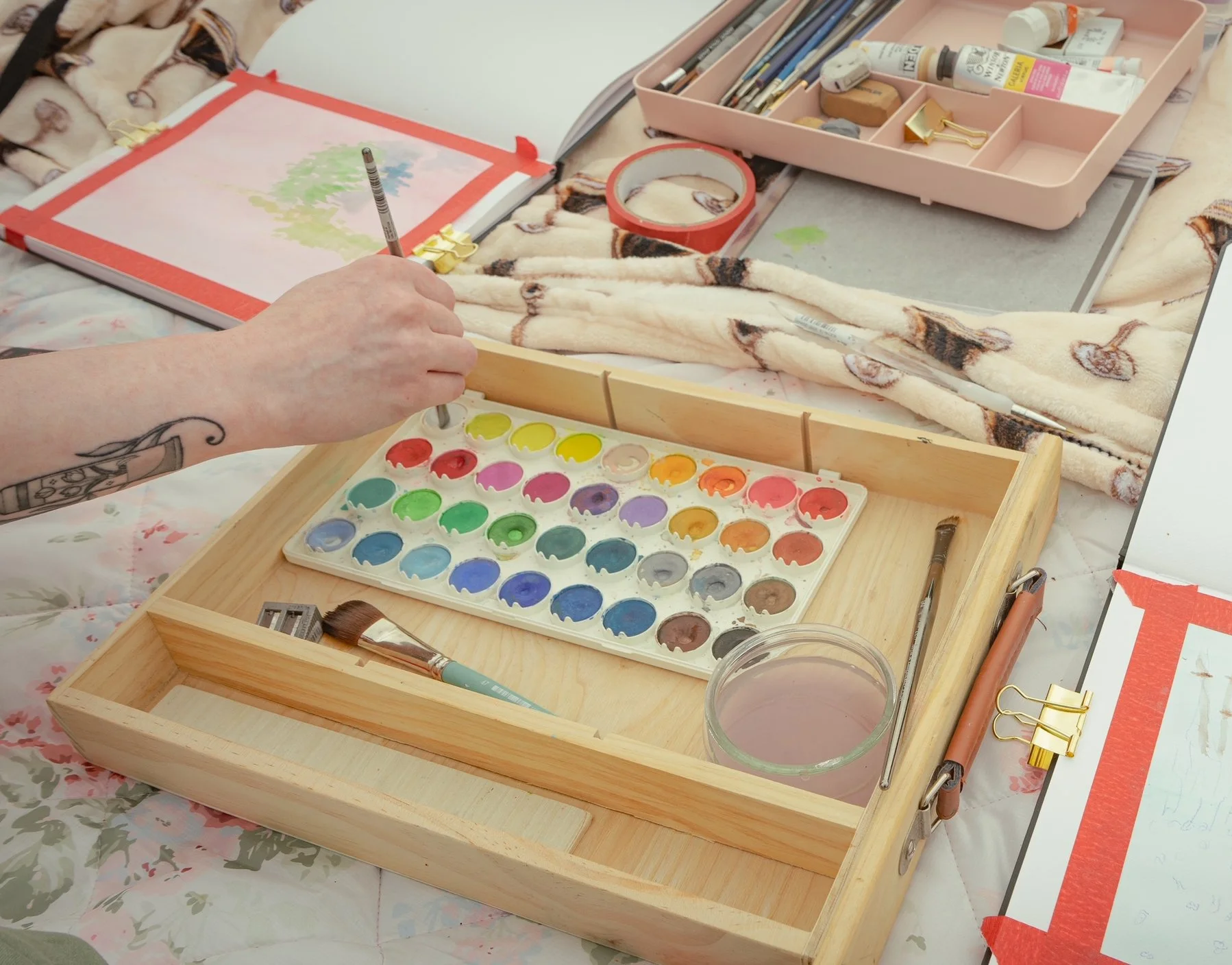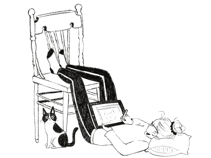 Outside of the studio, I spend time with my dog Honey and my cat Millie (a.k.a. Milfred), drink way too much coffee, and occasionally mistake my paint water for it. I’m also a big video game nerd and a total biology enthusiast — fun facts that somehow always sneak their way into the creative process.